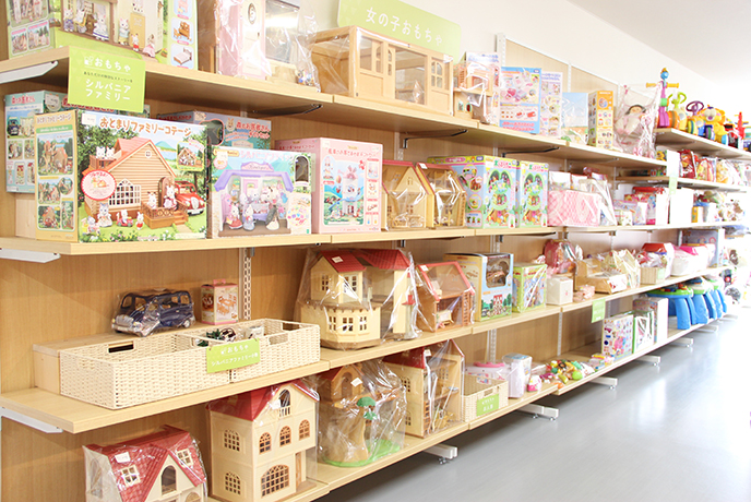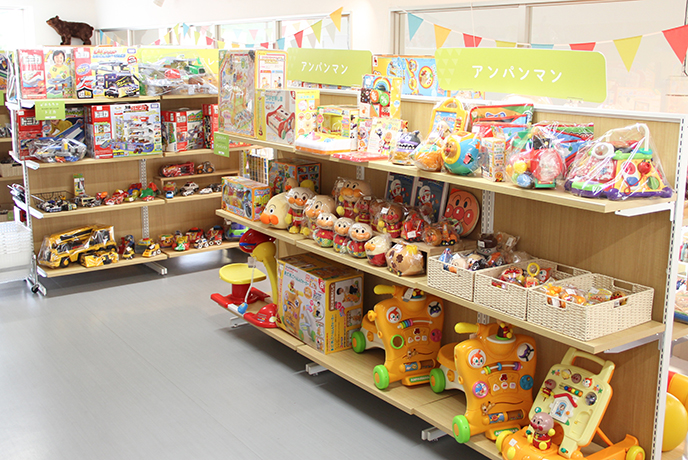 ポスポスで初めての新築物件。福岡インターも近く、週末になると福岡市外からのお客様も数多く来店されます。特に「おもちゃ」が充実しています。