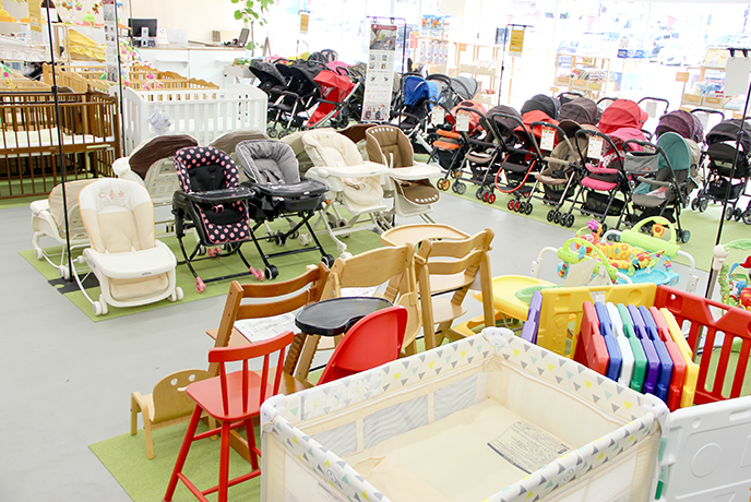 2018年9月にオープンした2号店。近くには新興住宅地が多く、ブランドアイテムの買取が多いお店です。大物ベビー用品や靴が豊富にそろっているので、子供の成長に合わせたお買い物が楽しめます。